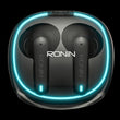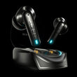 Sleek black earbuds with QnX™ noise cancellation, 50ms ultra low latency, and immersive sound, complete with LED charging case for all day performance.